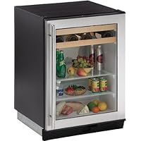 - U Line 1000 Series 1075BEVS00 16024 Beverage Center with 65 Can Capacity 16 Wine Bottle Capacity Dual Cooling Zones 2 BeechTrimmed Wine Racks 2 Glass Shelves and Glass Door Stainless Steel Field Reversible Door